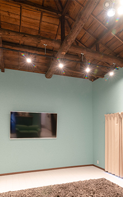 「れもん」の自慢は天井の高いひろびろワンルームに、本格キッチン、そしてこれまた広めの屋根付きウッドデッキ、さらに石風呂まで、ございます。