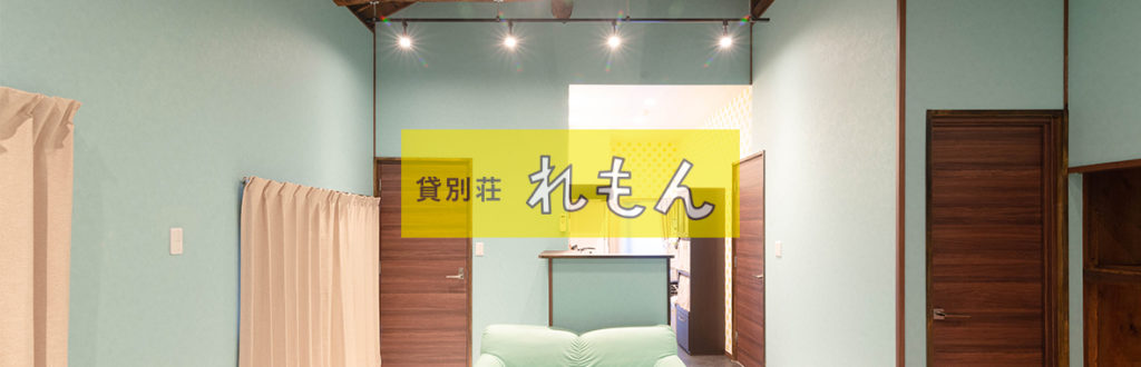 「れもん」のひろびろとしたワンルームは、天井吹き抜け、廊下から2箇所のドアで仕切られ、キッチン併設、デッキ併設大窓付き、モニター付き、シーリングファンと空調付き、となっております。プライバシーを重視し道路や市街が見えません。